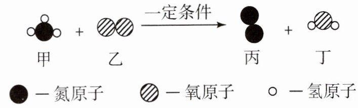 C [解析]根据质量守恒定律,该反应前后原子数目不变,A正确;由不同种原子构成的分子为化合物,该反应前后共有甲、丁两种化合物,B正确;由反应的微观示意图可知,该反应是NH₃与O₂反应生成N₂和H₂O,反应的化学方程式为4NH₃+3O₂$\frac{\underline{\;一定条件\;}}{}$2N₂+6H₂O,参加反应的甲和乙分子个数比为4:3,C错误;反应生成的丙和丁质量比为(28×2):(18×6)=14:27,D正确。