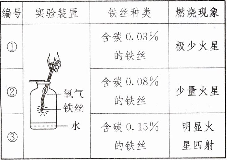 |②|氧气铁丝水|含碳0.08%的铁丝|少量火星|