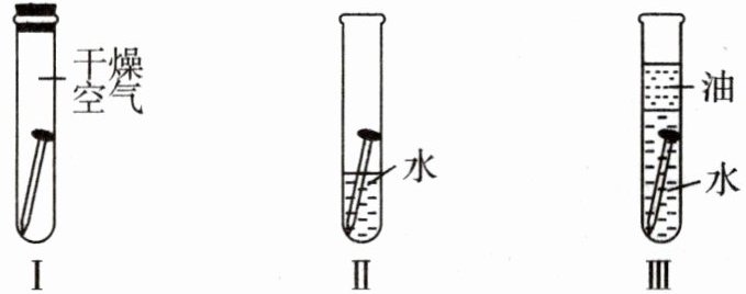 3 天后,Ⅰ、Ⅲ中铁钉不生锈,Ⅱ中铁钉明显生锈。