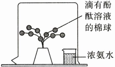 D [解析]浓氨水具有挥发性,挥发出的氨气分子不断运动,与滴有酚酞溶液的棉球接触,使其变红,A、B、C正确;本实验没有涉及温度变化与运动速率关系的对照实验,不能证明分子运动速率与温度有关,D错误。