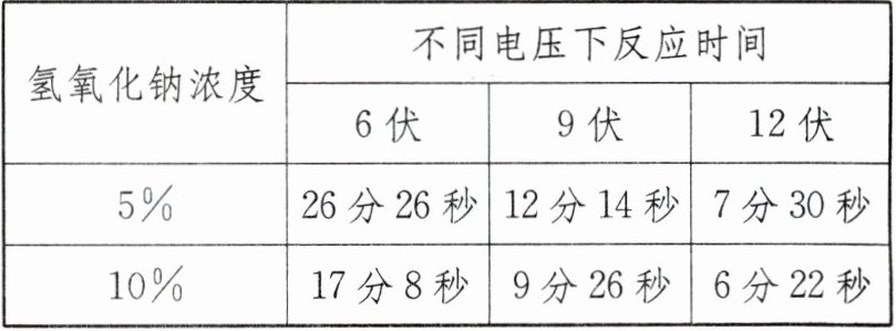 |氢氧化钠浓度|不同电压下反应时间|