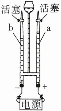。检验b管中气体:打开活塞,点燃,气体燃烧,火焰呈淡蓝色,放热,证明气体是氢气