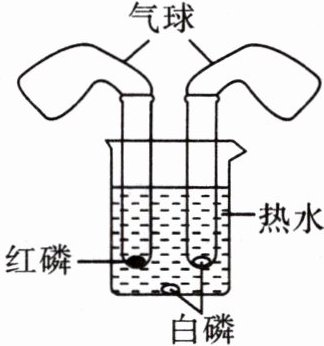 B [解析]气球的作用是收集磷燃烧产生的白烟,防止污染空气,A正确;观察到的现象是试管中的白磷能燃烧,而烧杯中的白磷不能燃烧,原因是没有与氧气接触,红磷不能燃烧,因为温度没有达到其着火点,B错误;热水的作用是升高温度,隔绝空气,C正确;由此实验得出燃烧的条件是可燃物与氧气(或空气)接触,温度达到着火点,D正确。