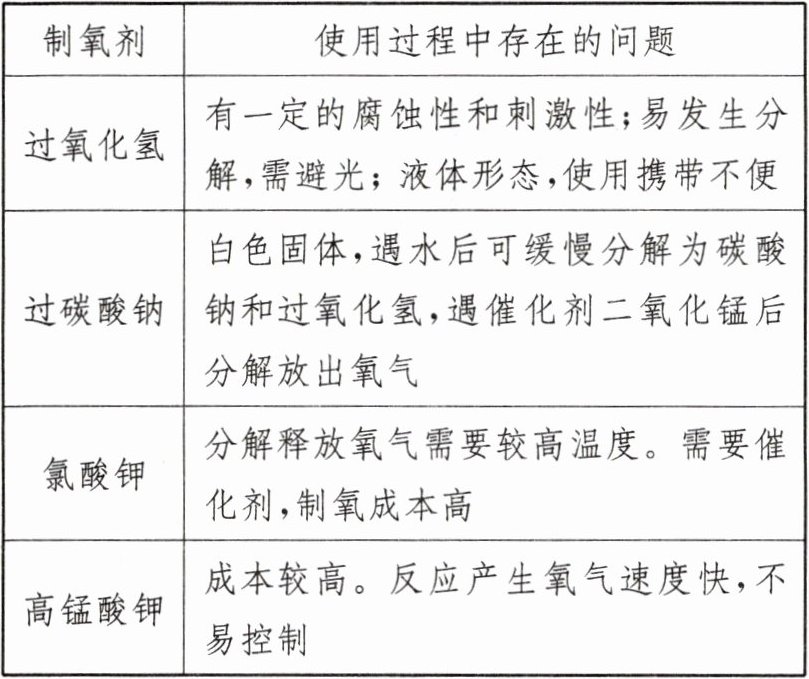 (3)根据下面的资料选择适合家用简易制氧设备的制氧剂。