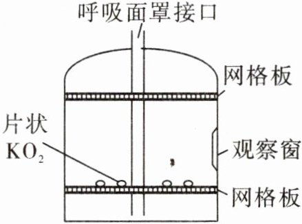 1 (2024·无锡惠山区三模)隔绝式自救器又叫压缩氧自救器。如图为某隔绝式“化学氧呼吸自救器”的装置示意图,其内部装有的黄色、片状超氧化钾($KO_{2}$),与呼出气中的$CO_{2}$、$H_{2}O$均能发生反应,生成$O_{2}$和白色固体,产氧效率高。下列说法正确的是(