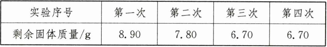 |剩余固体质量/g|8.90|7.80|6.70|6.70|