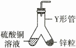 13. 用如图所示装置进行实验,倾斜Y形管,锌粒与硫酸铜溶液接触,表面有气泡产生并析出红色物质,溶液颜色变浅,经检测产生的气体为氢气。下列说法正确的是( )。
