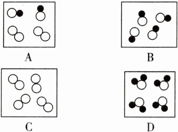 C [解析]图中有两种分子,属于混合物,A错误;图中只有一种分子,且该分子是由不同种原子构成的,属于化合物,B错误;图中只有一种分子,该分子是由同种原子构成的,属于单质,C正确;图中只有一种分子,且该分子是由不同种原子构成的,属于化合物,D错误。