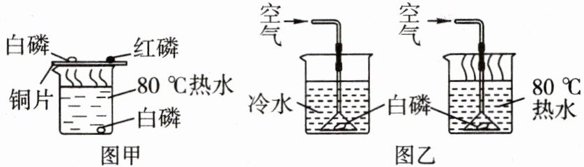 11 如图是为探究物质燃烧条件设计的实验。甲中的白磷未燃烧,而乙中的白磷发生了燃烧。