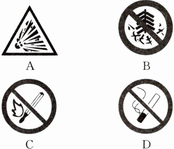 8 教材P116插图·改编 (2024·天津和平区期末)下列表示"禁止燃放鞭炮"的图标是(