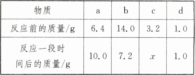 |反应一段时间后的质量/g|10.0|7.2|x|1.0|