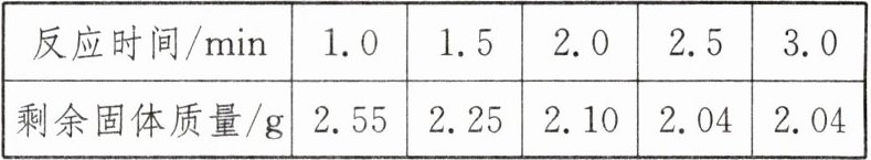 |剩余固体质量/g|2.55|2.25|2.10|2.04|2.04|
