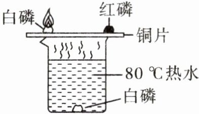 2.A [解析]铜片上的白磷与氧气接触,且温度达到了着火点,燃烧;铜片上的红磷与氧气接触,但是温度没有达到着火点,不燃烧,说明燃烧需要温度达到着火点,A正确;该实验中,热水的作用是提供热量,同时隔绝氧气,B错误;烧杯上盖铜片是利用铜片良好的导热性,使温度达到白磷的着火点,C错误;红磷燃烧与白磷燃烧产物相同,均是五氧化二磷,D错误。