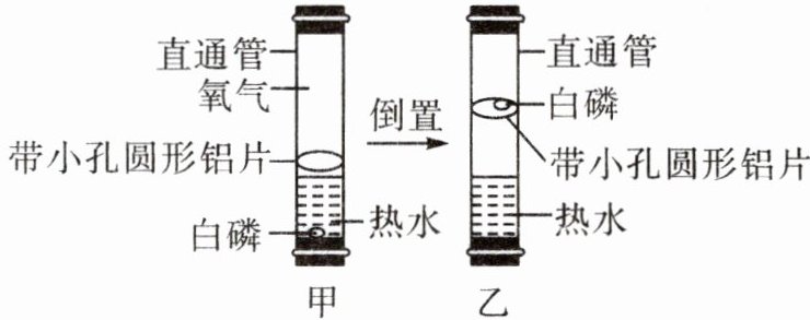 6.A [解析]甲、乙两个实验中温度相同,没有控制温度的高低,不能探究可燃物燃烧需要温度达到着火点,A错误;由图可知,甲和乙中的白磷温度均达到了着火点,但甲中的白磷被水隔绝不能与氧气接触,不发生燃烧,而乙中的白磷能够与氧气接触,能够燃烧,B正确;带小孔圆形铝片起过滤作用,将白磷与水进行分离,来探究燃烧条件,C正确;实验中通过装置的倒立或正放,控制白磷与氧气的接触与分离,可反复呈现白磷燃烧与熄灭的现象,D正确。