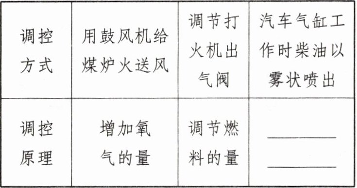 |调控方式|用鼓风机给煤炉火送风|调节打火机出气阀|汽车气缸工作时柴油以雾状喷出|