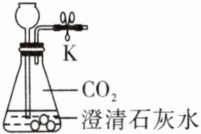 3 (2023·苏州姑苏区二模)实验小组用如图所示装置进行实验,打开 K,向充满 $CO_{2}$ 的锥形瓶中加入适量的澄清石灰水,立即关闭 K,振荡,观察现象,下列有关说法不正确的是(