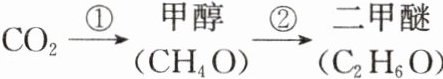 $CO_2→①$甲醇$(CH_4O)→②$二甲醚$(C_2H_6O)$