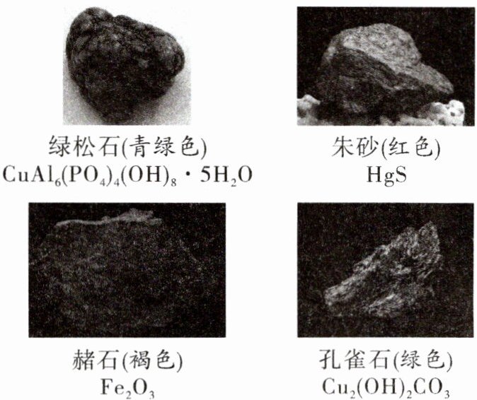 3 教材 P172练习与实践1题·改编 (2023·无锡梁溪区二模)青绿山水巨作《千里江山图》中的颜料都来自天然矿石,其中4种矿石及其主要成分如下: