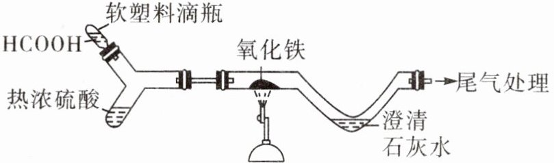 11 中考新考法 实验原理拓展 如图是CO还原氧化铁的实验装置。取2.09g氧化铁粉末进行实验(已知:$HCOOH\frac {\underline {{浓}H_{2}SO_{4}}}{}H_{2}O+CO\uparrow $),实验结束后称得装置中剩余固体质量为1.6g。下列说法正确的是(