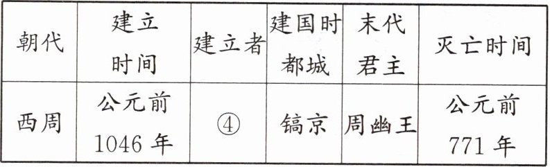 |西周|公元前1046年|④|镐京|周幽王|公元前771年|