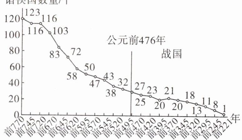 C [解析]根据图片内容并结合所学知识可知,春秋战国时期,诸侯国数量不断减少,这说明经过争霸和兼并战争,不断有弱小国家被强大的国家所吞并,区域内的统一趋势不断加强。故选C项。