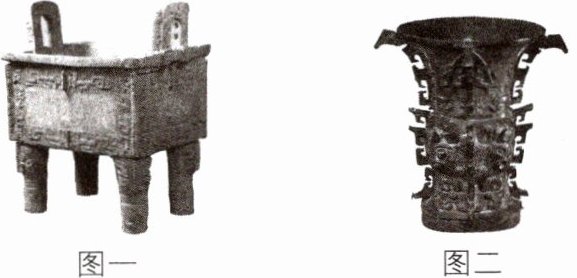 (2)图一、图二是商周时期青铜器的代表作,请写出它们的名字。根据材料二并结合所学知识,谈谈你对商周时期青铜文明的感想。(4 分)