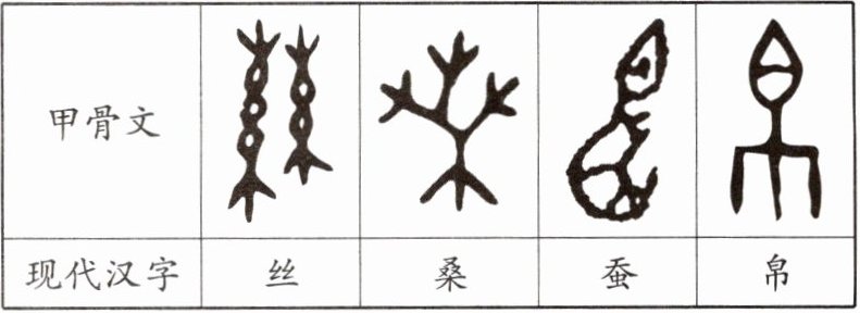 | 现代汉字 | 丝 | 桑 | 蚕 | 帛 |