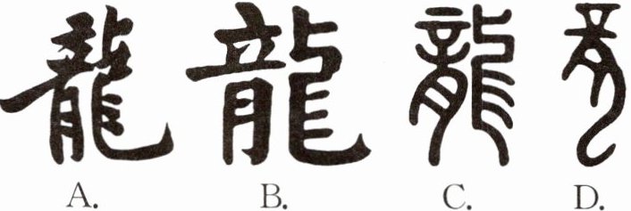 8(2024·枣庄中考)2024年是农历甲辰龙年。“龙”字始见于商代甲骨文,其字形像一条飞腾的巨龙。以下字体属于甲骨文的是( )