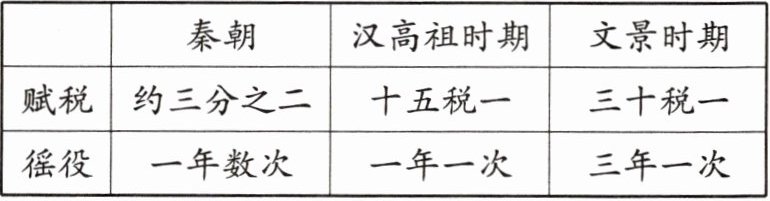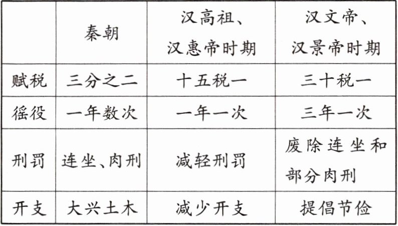 | | 秦朝 | 汉高祖、汉惠帝时期 | 汉文帝、汉景帝时期 |