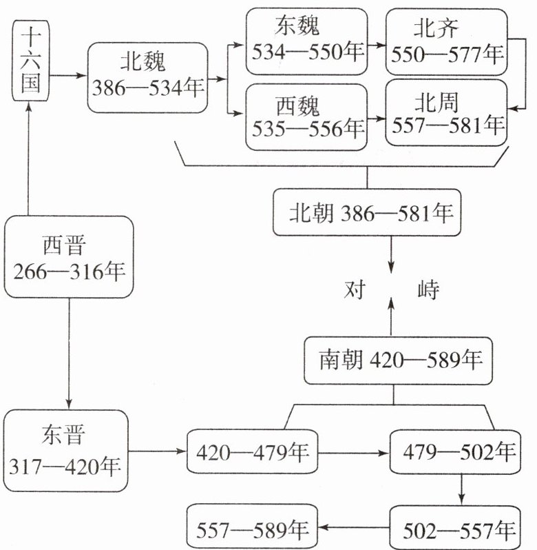 (2)南朝疆域最广的是哪个政权?从哪个政权开始,南朝在南北实力对比中处于明显劣势?(2 分)