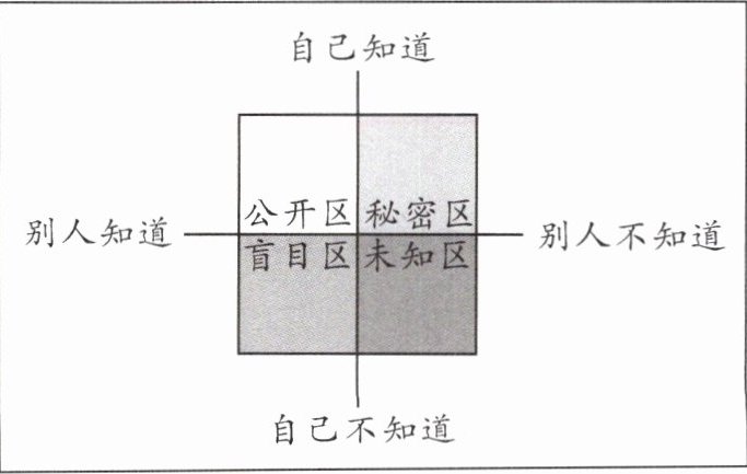 7 教材启思导行改编 乔哈里窗模型是一种用于描述人际交往和自我认知的模型。该模型将个体的自我认识划分为四个区域(如下图)。对此,下列说法恰当的是( )
