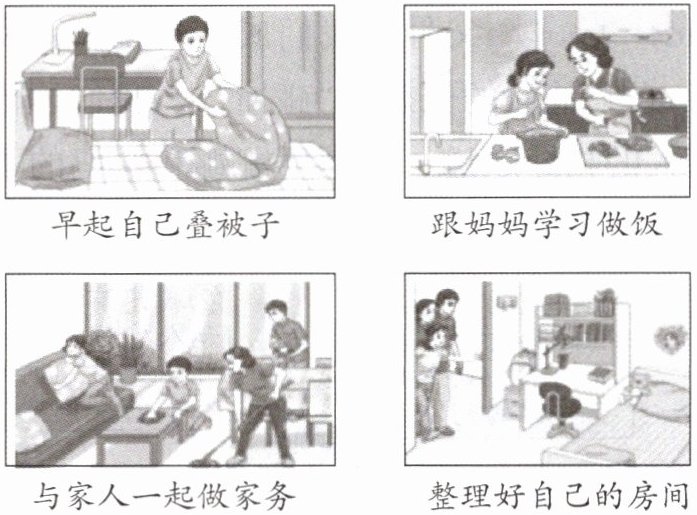 C [解析]本题考查构建和谐家庭。漫画内容体现了参与家务劳动,并未涉及法定义务,①错误;依据教材知识,结合漫画内容可知,积极参与家务劳动有利于我们养成劳动的习惯,能增强我们的家庭责任意识,②④正确;参与家务劳动的目的在于养成良好的劳动习惯,并非提升劳动技能,③错误。
