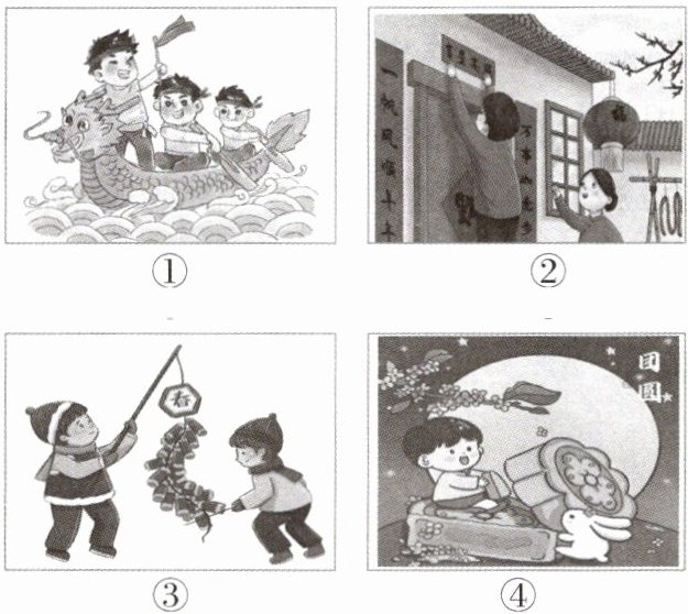 (1)同学们搜集了一些图片(见上图),其中与春节习俗有关的是______。(填写序号即可)