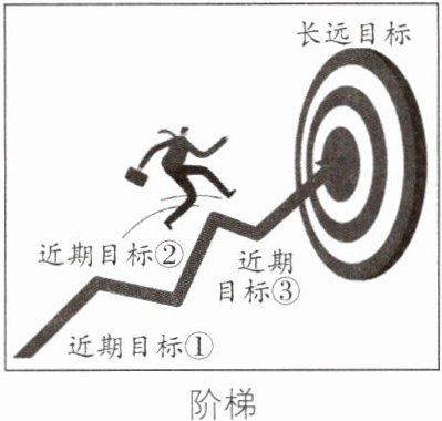 D [解析]本题考查长远目标和近期目标。分析漫画可知,我们要树立正确的人生目标,所有的近期目标都是围绕长远目标而展开的,只有分阶段实现近期目标,才能实现长远目标,D正确;近期目标和长远目标都重要,A错误;B说法太绝对,目标可以调整;C观点正确,但在材料中没有体现。