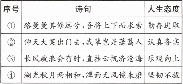 6 (2025·江西新余期末)积极的人生态度,会让人热爱生活,对未来充满信心。下列诗句与所体现的人生态度相匹配的有( )