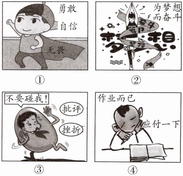 7 (2025·广西南宁期末)不同的人生态度会导致不同的行为选择。以下漫画体现出积极的人生态度的有( )