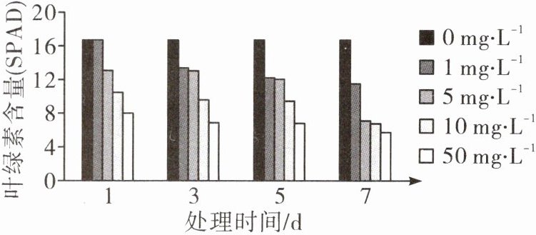 和处理时间的延长,香蕉草的叶绿素含量呈现下降(或减少)