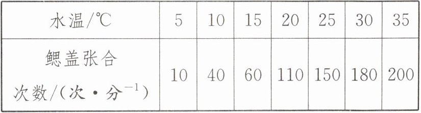 。④观察与记录:10分钟后数其每分钟鳃盖张合的次数,连测3次,求平均值。实验结果如下: