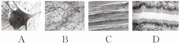 B [解析]结缔组织的细胞之间间隙较大,分布广泛,具有支持、连接、保护和营养等功能,如骨组织、血液、脂肪等都是结缔组织。根据题干可知,牛板筋中的"筋"属于结缔组织,B正确。归纳总结 上皮组织覆盖在身体内外及各种囊腔的表面;结缔组织分布广泛,如骨组织、血液、脂肪等;肌肉组织分布在心脏、胃、肠、血管等处。