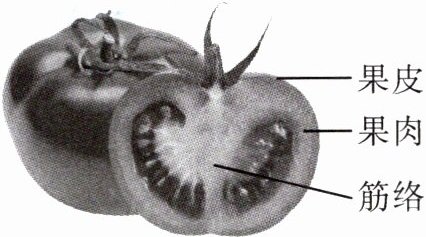 8 (2024·山东济宁任城区期末)取一个成熟的番茄果实,用开水烫一烫,撕下表皮,可以看到里面的果肉肥厚多汁。仔细观察,里面还有丝丝"筋络"。下列分析正确的是(