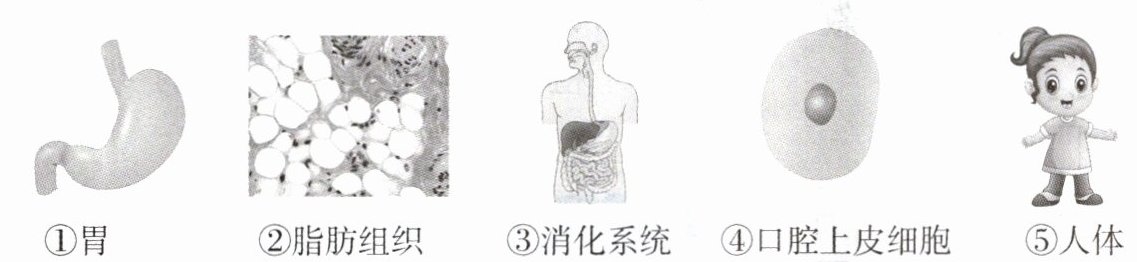 ①胃 ②脂肪组织 ③消化系统 ④口腔上皮细胞 ⑤人体