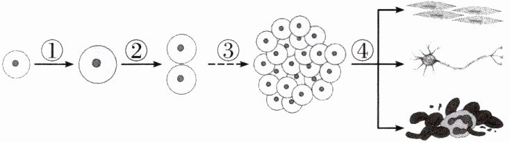 )。A.①表示细胞生长的过程,细胞能从周围环境中吸收营养物质而无限生长