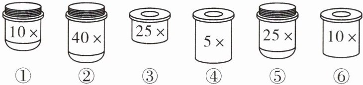 C [解析]显微镜的镜头有目镜和物镜两种,物镜是安装在转换器上的,因此物镜有螺纹,①②⑤是物镜。目镜没有螺纹,③④⑥是目镜。显微镜的放大倍数等于目镜放大倍数与物镜放大倍数之积,因此,要使被观察的物体放大50倍,应选择的镜头是①和④,C正确。
