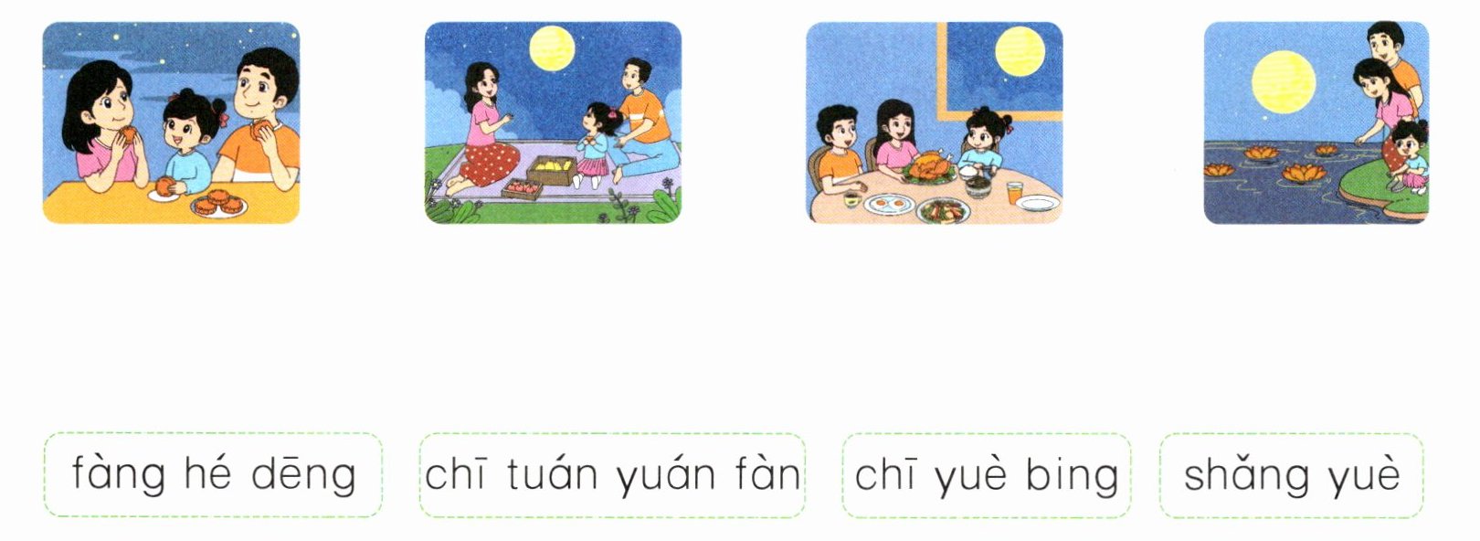4. 情境题 看图,了解中秋节的活动,连一连。