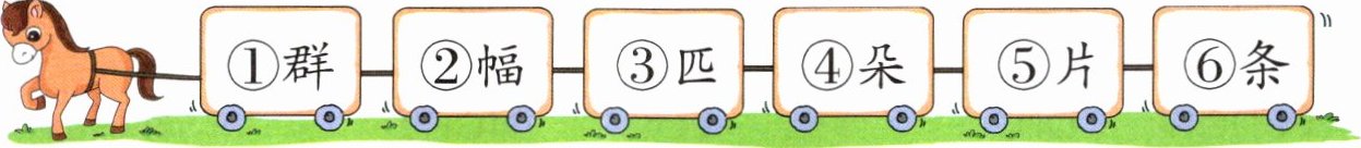 ①群 ②幅 ③匹 ④朵 ⑤片 ⑥条