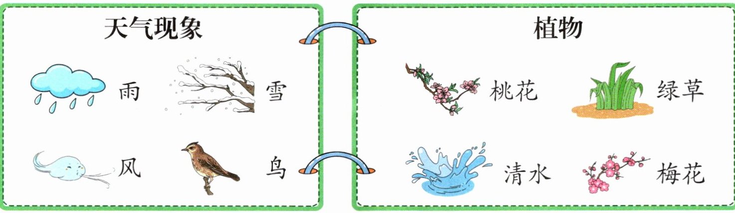 ①鸟 ②花 ③云 ④柳绿 ⑤雪 ⑥山清