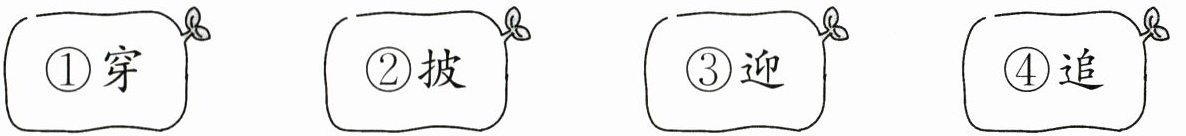 一颗落在树叶上的小雨点看到,小白兔的妈妈()着雨披,()着雨鞋,拿着雨伞去()刚出门的小白兔,结果()面碰到了被雨淋湿了的小松鼠。