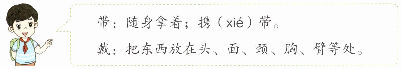 带:随身拿着;携(xié)带。