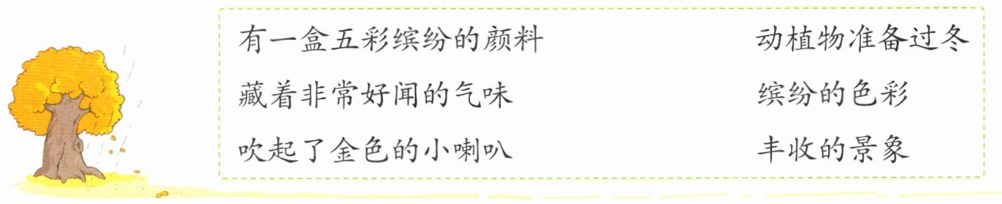 4. 秋雨解秘密 根据课文连一连,欣赏秋雨带来的美。