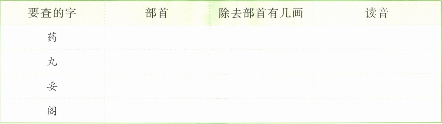 1. 故事里识字 小艺通过查字典来认识故事中的生字,请你帮她填一填。